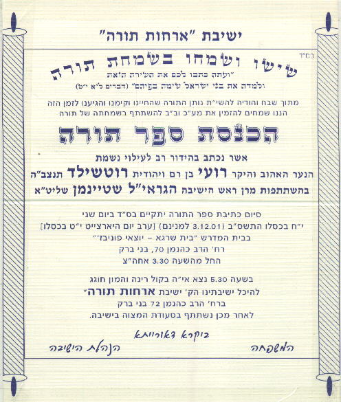 א"טילש ןמנייטש ל"יארגה הבישיה שאר ןרמ - ר"סב תויתוא תביתכ